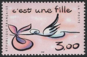 - 赤ちゃんを運ぶコウノトリのイメージ(出産-女の子) (フランス 1999年)